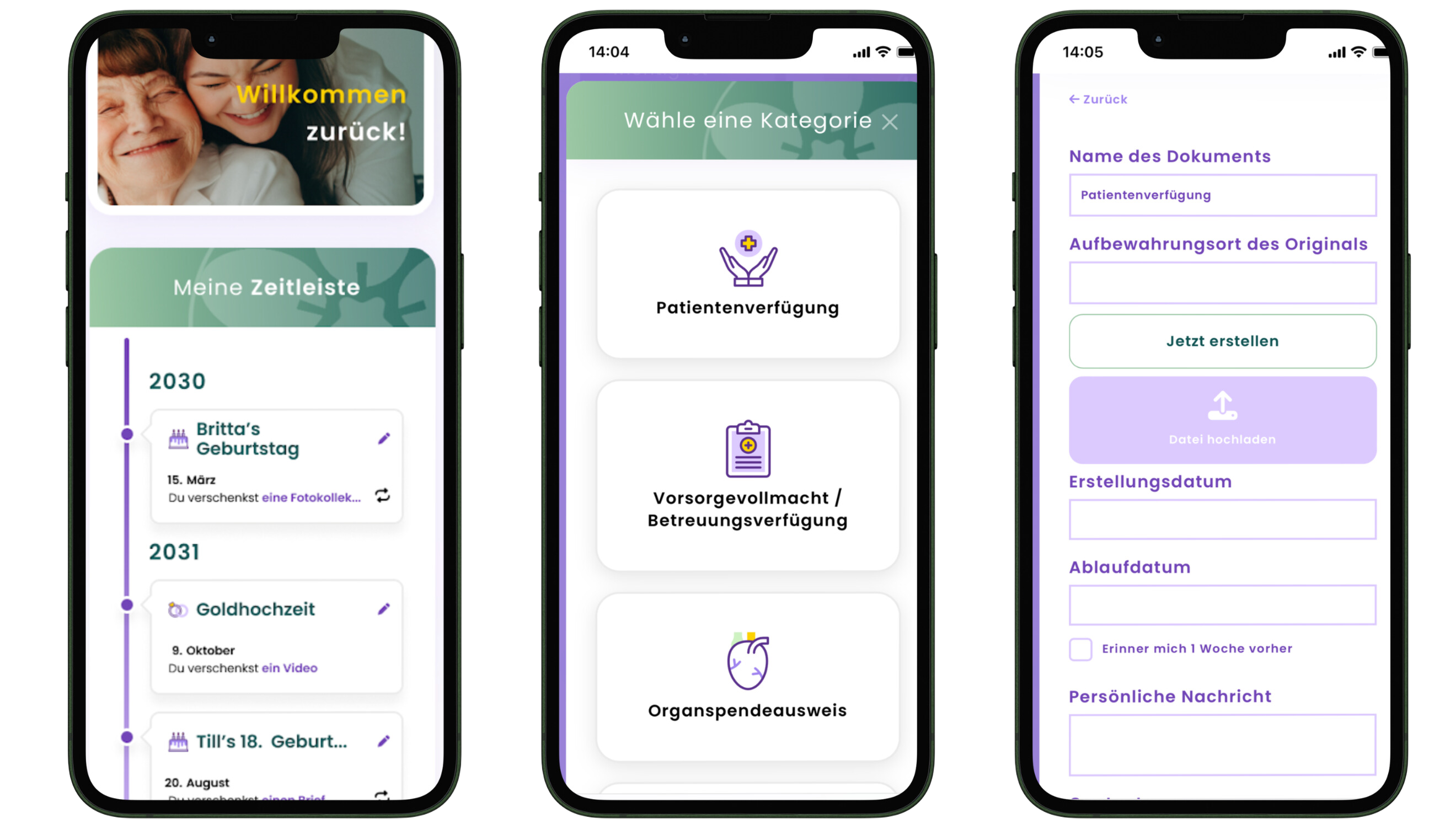 Kreiere Deinen persönlichen Zeitstrahl und bleibe mit persönlichen Botschaften ein Teil des Lebens Deiner Angehörigen – egal, was passiert.